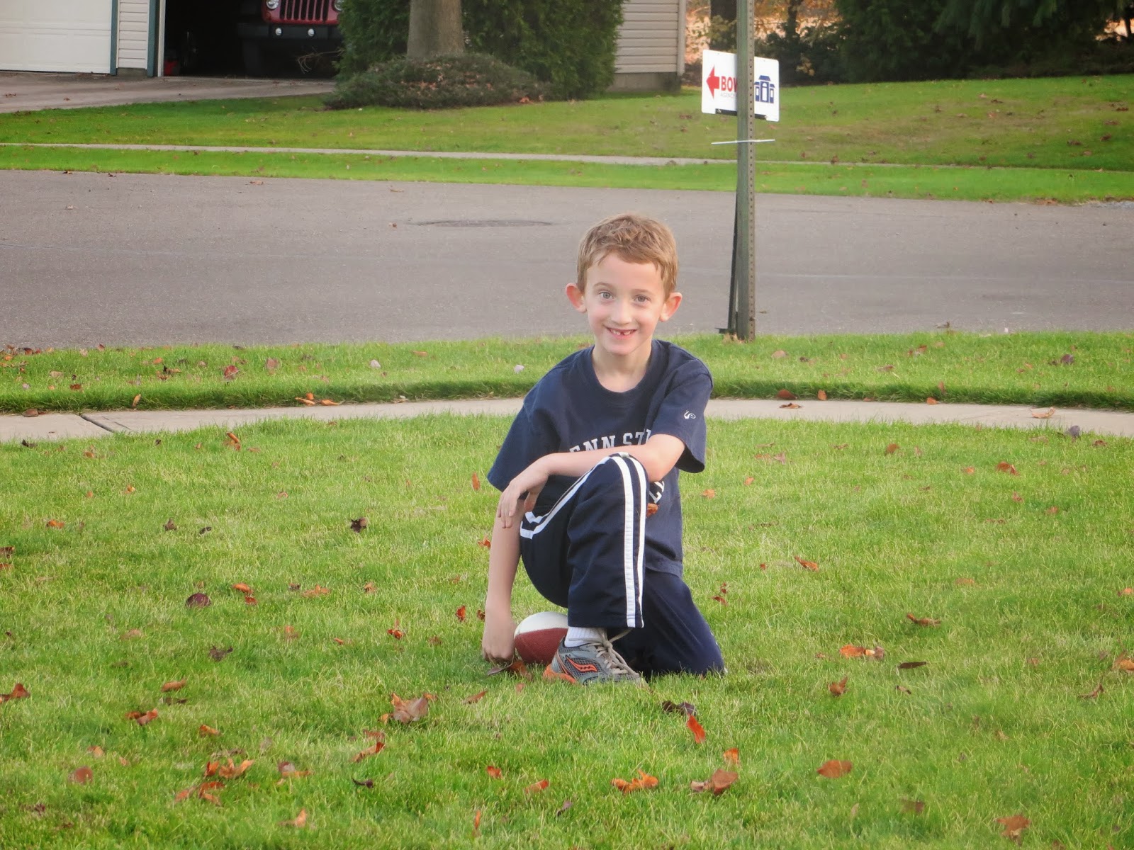This week has buzzed past as most seem to do lately, but I thought I would include a few pictures from last weekend. Jason had been away on a trip to California on Wednesday-Friday, so the kids and I were on our own Friday evening. We decided to go to "almost" midnight madness at the kids' school and had a fun time. Joshua loved seeing the big kids playing basketball. Although Daddy was home on Saturday morning, he was off to the PSU game with clients on Saturday, so we had a day together at home. I cooked up a storm- chicken corn soup, 2 pumpkin pies, oatmeal raisin cookies-- the house smelled amazing! And then, after the hard work was done (and by that, I am referring to getting Mara down for her nap), the big kids and I headed outside for some fun in what may be turning out to be the last nice weekend before the cold chill sets in. We played soccer and football and rode bikes and shot baskets. It was awesome. And there were pictures. There are always pictures.